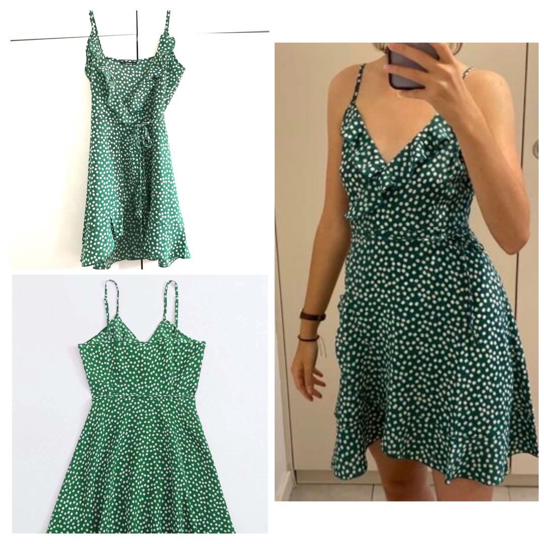 Shein Green Floral Ruffle Trim Wrap Hem Dress Women S Fashion Dresses Sets Dresses On Carousell